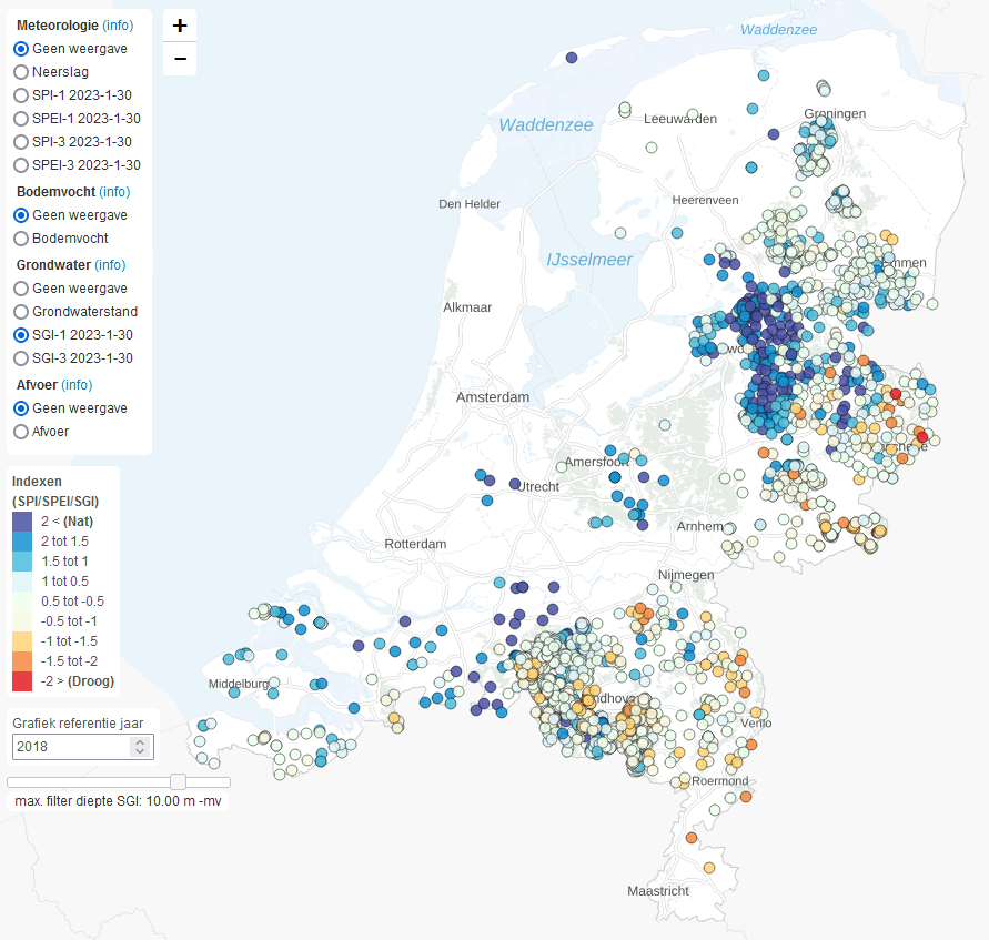Not only 2022 was dry in the Netherlands, in the period 2018-2020 water managers were also confronted with extreme drought. During this multiyear event it became clear that information about the propagation of a drought in the system was difficult to find and that, for example, measurements were scattered across many different organisations. For a uniform indication of drought conditions and show the propagation of a drought it was important to change this. A online information portal was developed, www.droogteportaal.nl, with up-to-date drought indicators for precipitation (SPI, SPEI) and groundwater (SGI). During the 2022 drought, this portal provided information about the drought development and was also included in the national drought monitor of Rijkswaterstaat (Dutch Ministry of Infrastructure and Water Management). We are still developing the portal by, for example, improving the modelling behind the calculation of the drought indices and changing the visualisation of the information.
